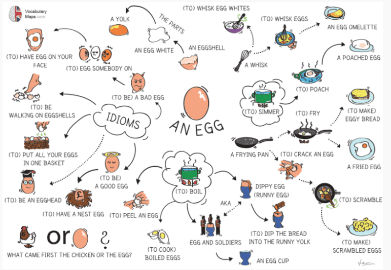 Tohle je skvělá metoda hlavně pro vizuální typy. Do středu papíru napiš hlavní slovo nebo téma (třeba „money“) a kolem něj kresli šipky nebo větve s dalšími slovy a frázemi, které s tím souvisejí (banka, půjčka, koupit, prodat…).
